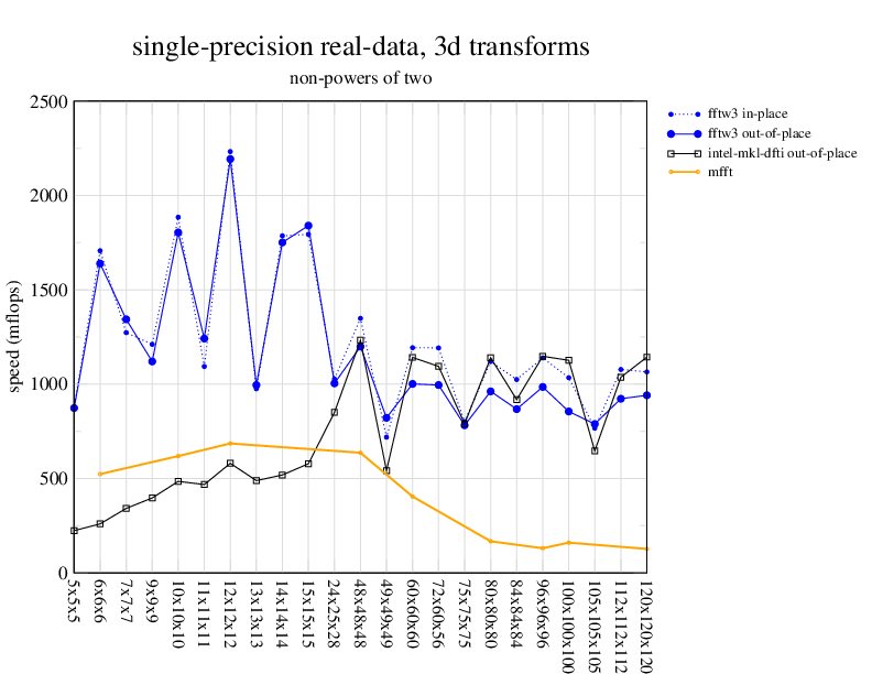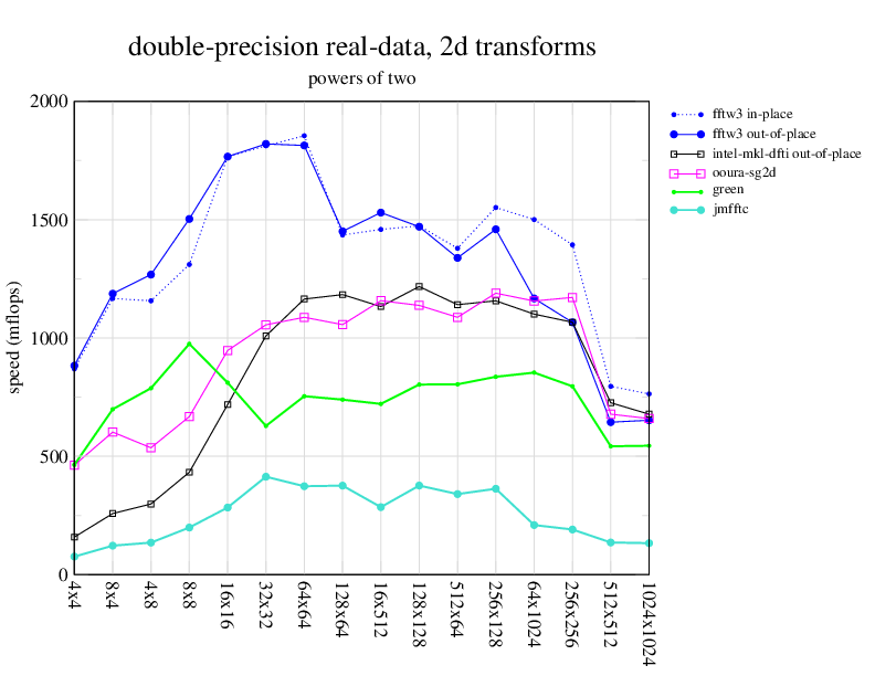IBM Thinkpad T40. 1.6 GHz Intel Pentium M (Banias), 1MB L2. Linux 2.6.11, gcc-4.0.2, g++-4.0.2, gfortran-4.0.2, Intel Math Kernel Library Version 8.0.1, Intel Integrated Performance Primitives v5.0. Has SSE (4-way single precision SIMD), SSE2 (2-way double precision SIMD).